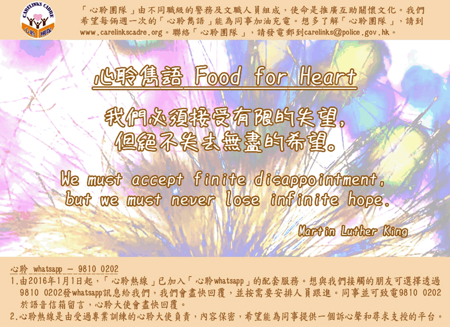 我們必須接受有限的失望,但絕不失去無盡的希望。