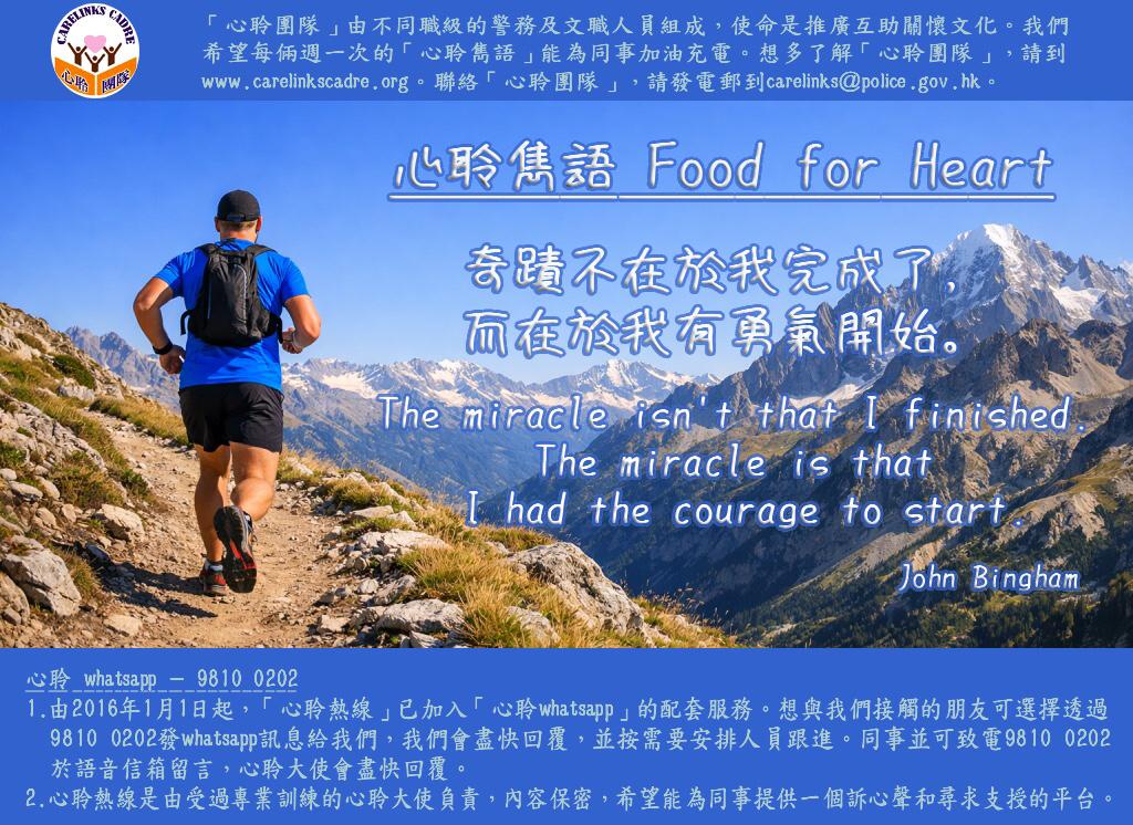 《心聆雋語》奇蹟不在於我完成了,而在於我有勇氣開始。 2026 年 04 月 08 日2026 年 04 月 22 日 奇蹟不在於我完成了,而在於我有勇氣開始。The miracle isn’t that I finished. The miracle is that I had the courage to start.John Bingham 分享此文: Share on X (Opens in new window) X Share on Facebook (Opens in new window) Facebook Like Loading...